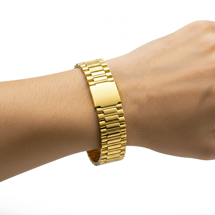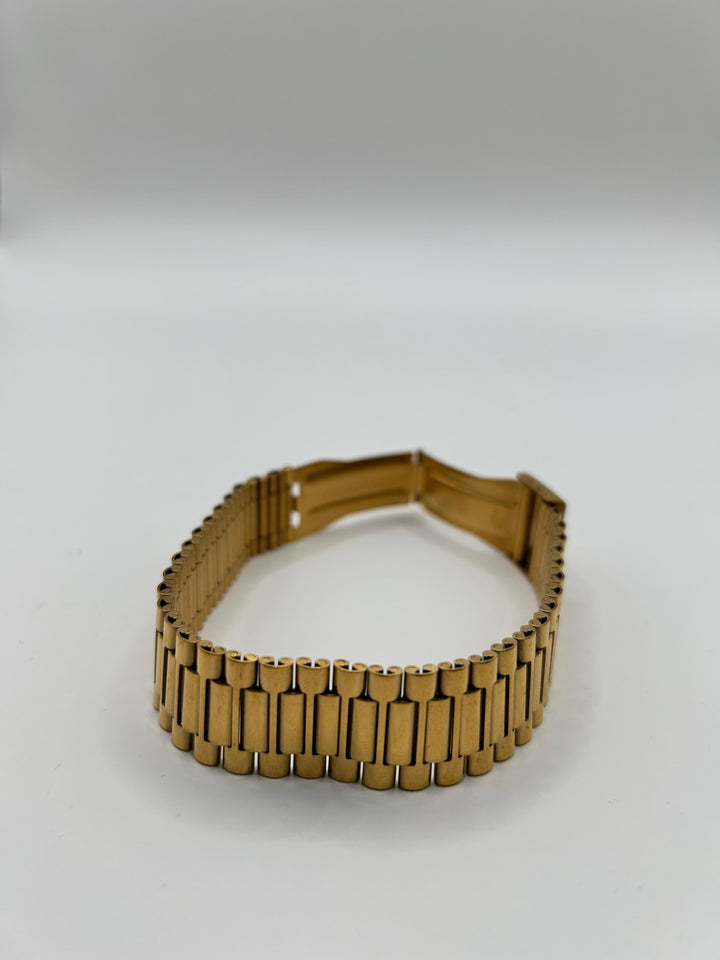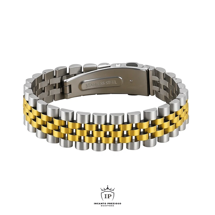 Bracciale di design elegante e sofisticato, ispirato al celebre cinturino Rolex. Realizzato con materiali di alta qualità, combina resistenza e comfort a un’estetica lussuosa e senza tempo. La maglia articolata riproduce fedelmente lo stile iconico dei cinturini più prestigiosi, offrendo un gioiello versatile adatto a ogni occasione.
