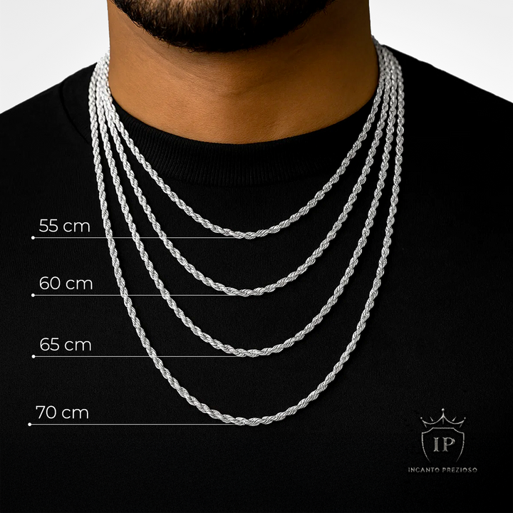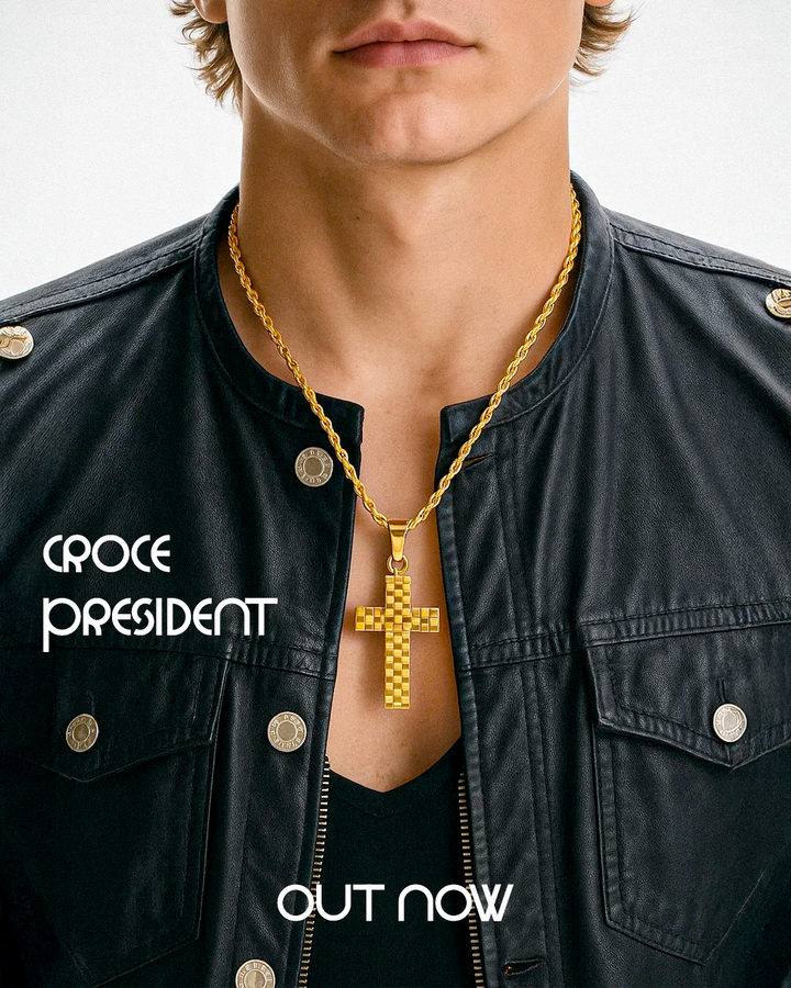 La Collana President è realizzata in acciaio inossidabile di alta qualità con una texture lavorata a mano, ispirata ai cinturini dei più esclusivi orologi di lusso. Resistente all’acqua e progettata per durare nel tempo, unisce stile raffinato e praticità quotidiana.