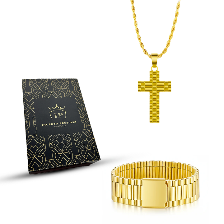 Bracciale President + Collana President in gold finish, insieme nella scatolina brandizzata Incanto Prezioso già pronta da donare.