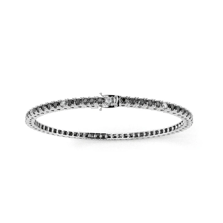 Dal design audace e contemporaneo, il bracciale Tennis Zebra è realizzato in argento 925 sterling e arricchito da zirconi neri, intervallati da uno bianco ogni cinque, creando un elegante effetto a contrasto. L’incastonatura lineare e precisa valorizza la brillantezza di ogni pietra, conferendo al bracciale luminosità uniforme e stile distintivo.